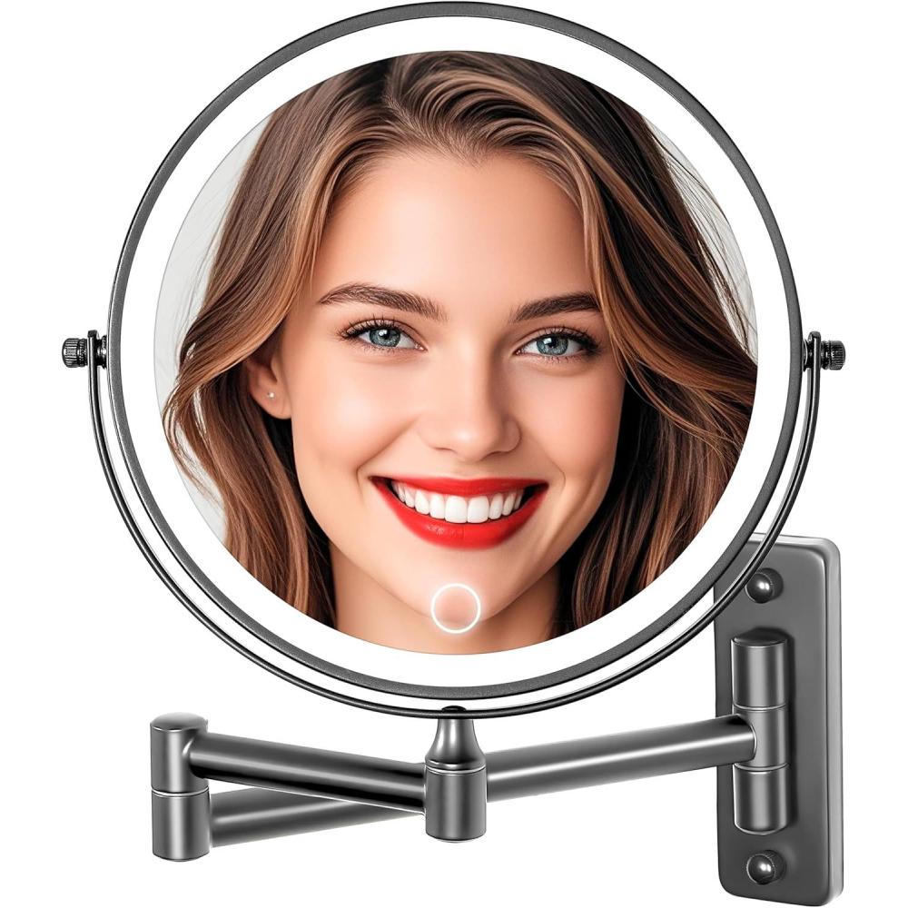 【Ultra-clear 1X/20X Magnification & Black Nickel Anti-Fog Bathroom Mirror 】This 20X magnifying mirror with light offers 1X for overall makeup. The 20X HD magnification ensures clear visibility without glare for precise makeup application. You can see every hair to create flawless, symmetrical brows.The 9″ fog-free wall-mounted lighted makeup mirror resists fogging, features senior pearl nickel frame, seamless crystal glass (reduces glare), and explosion-proof safety design