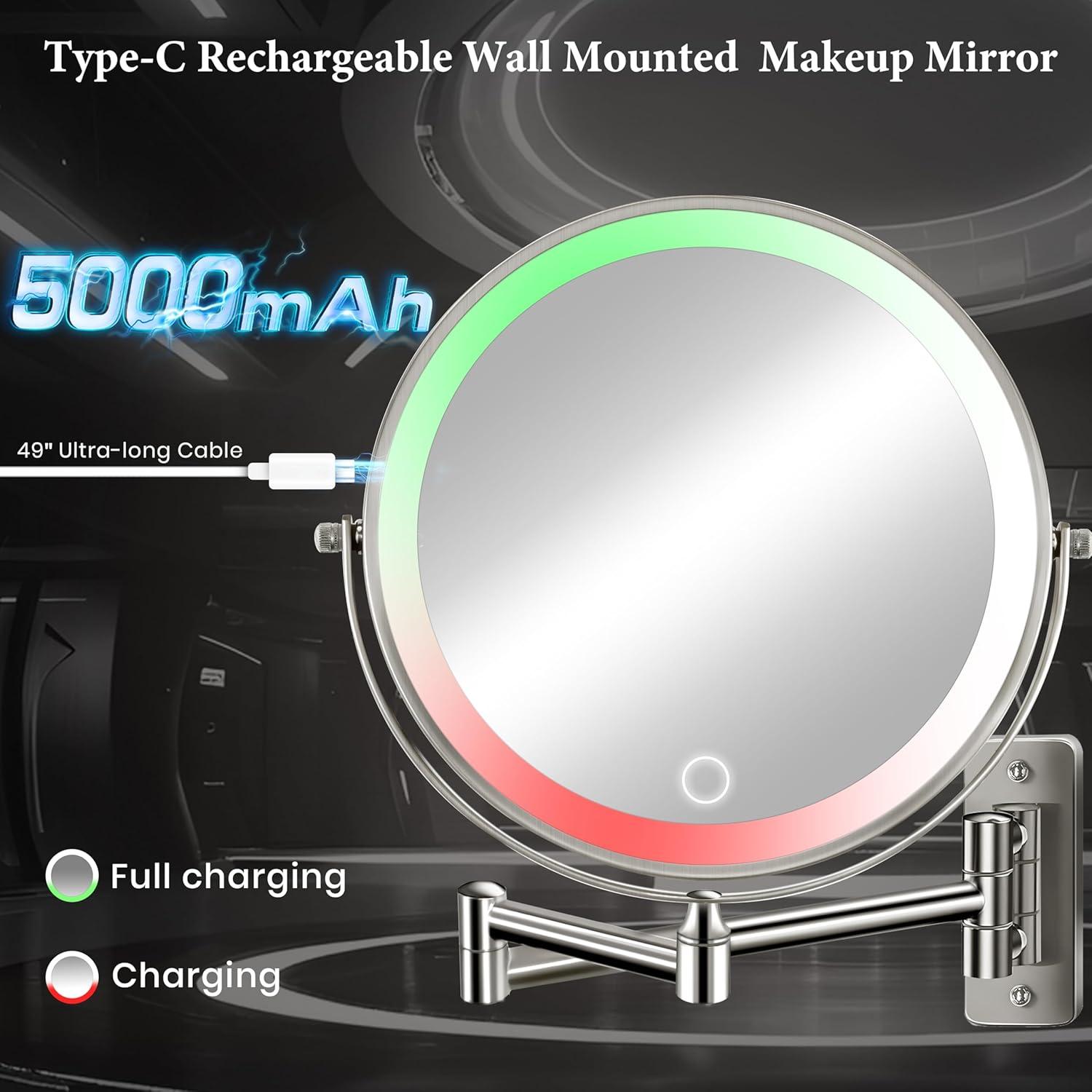 【5000mAh Wireless Mirror with 1H Auto Shut-Off 】Equipped with a built-in 5000mAh USB-C rechargeable lithium battery of huge capacity (USB cable included), our wall mounted makeup mirror enables wireless usage, offering a seamless and trouble-free experience. Wall mounted makeup mirror with lights and magnification offers 120-hour runtime. Auto shutoff after 1 hour saves energy. Power-saving feature ensures instant readiness for next use